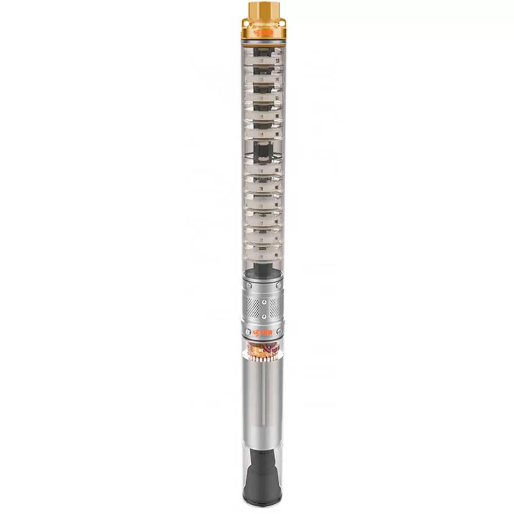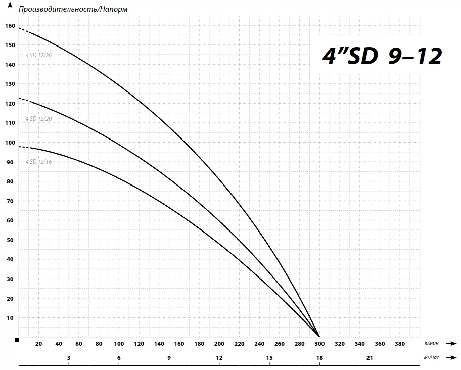 Трехфазный глубинный погружной насос 4SD 12/20 диаметром 98 мм с повышенной устойчивостью к песку. Насос 4SD 12/20 доступен к покупке с двигателями IBO и итальянскими двигателями IBO ITALY. В насосе 4SD 12/20 используется технология «плавающих лопастных колес», а также для основных рабочих элементов насоса применяются износостойкие материалы: латунный нагнетательный патрубок, корпус, вал и сетка фильтра выполнены из нержавеющей стали AISI 304 / а также лопастные колеса выполнены из высококачественной пластмассы, Благодаря этому насос 4SD 12/20 имеет повышенную стойкость к песку. Насос комплектуется кабелем 1 м, по желанию его можно нарастить до нужного размера. Скважинный насос 4SD 12/20 имеет отличные характеристики. Напор насоса в максимальной точке составляет 123 м, а производительность достигает максимального показателя в 18 м3/час. Мощность двигателя составляет 4000 Вт, то вполне неплохо для насоса с такими напорно-расходными характеристиками. Насосы серии SD марки ИБО были первыми насосами на рынке, названными «анти–песочными». Они по прежнему являются одними из немногих скважинных насосов на рынке, которые имеют конструкции с такой высокой устойчивостью к песку. Максимальное содержание песка в воде – до 5%. Насос 4SD 12/20 можно применять как аналог насосов ЭЦВ.