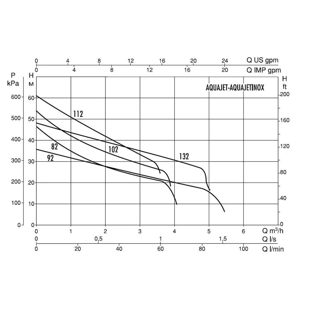 Графические характеристики насосной станции DAB AQUAJET 132 M G