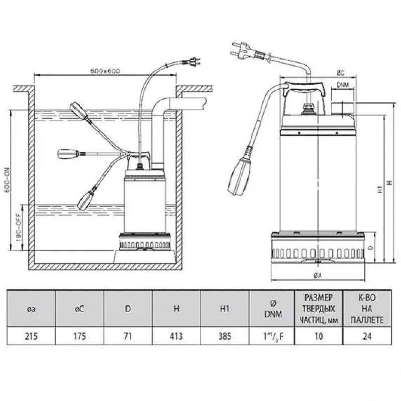 Схема дренажного насоса DAB DRENAG 1000 M-A