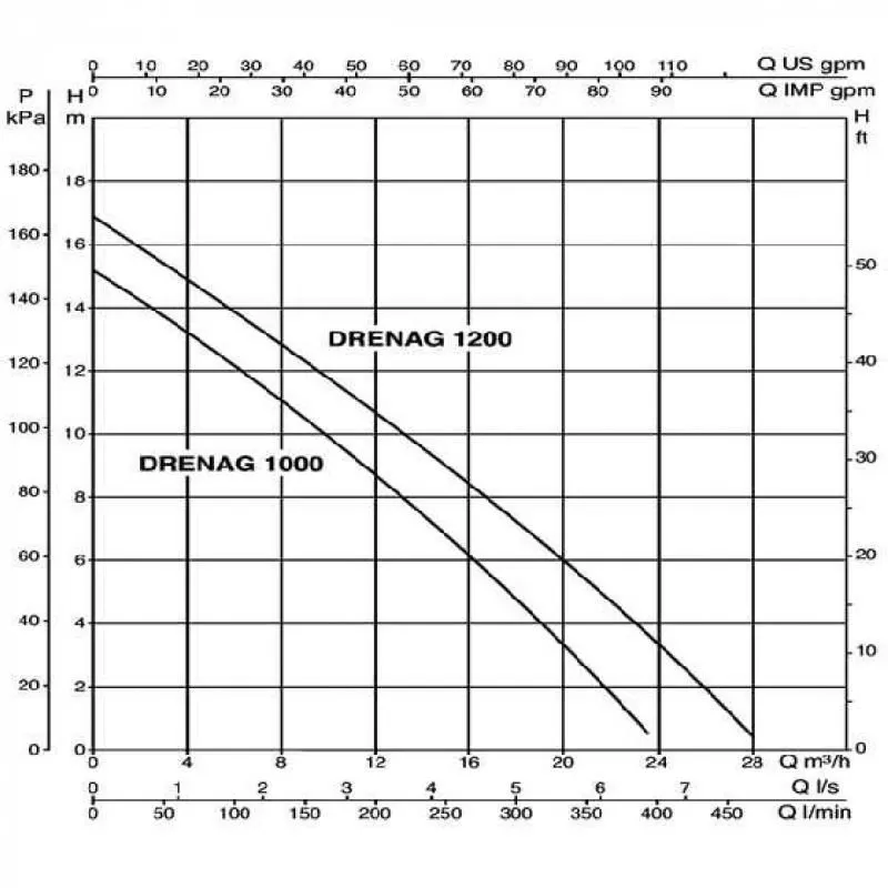 Графические характеристики дренажного насоса DAB DRENAG 1000 T-NA
