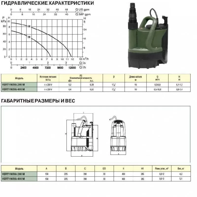 Схема дренажного насоса DAB VERTY NOVA 200 M
