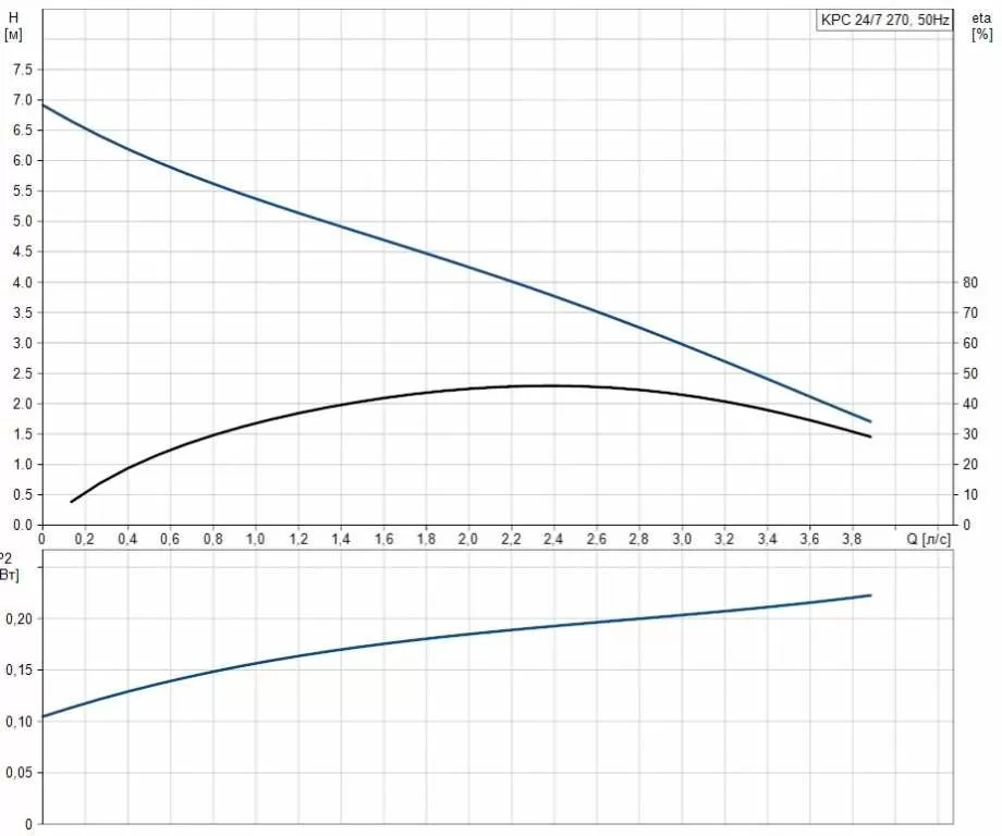 Графические характеристики дренажного насоса Grundfos KPC 24/7 270