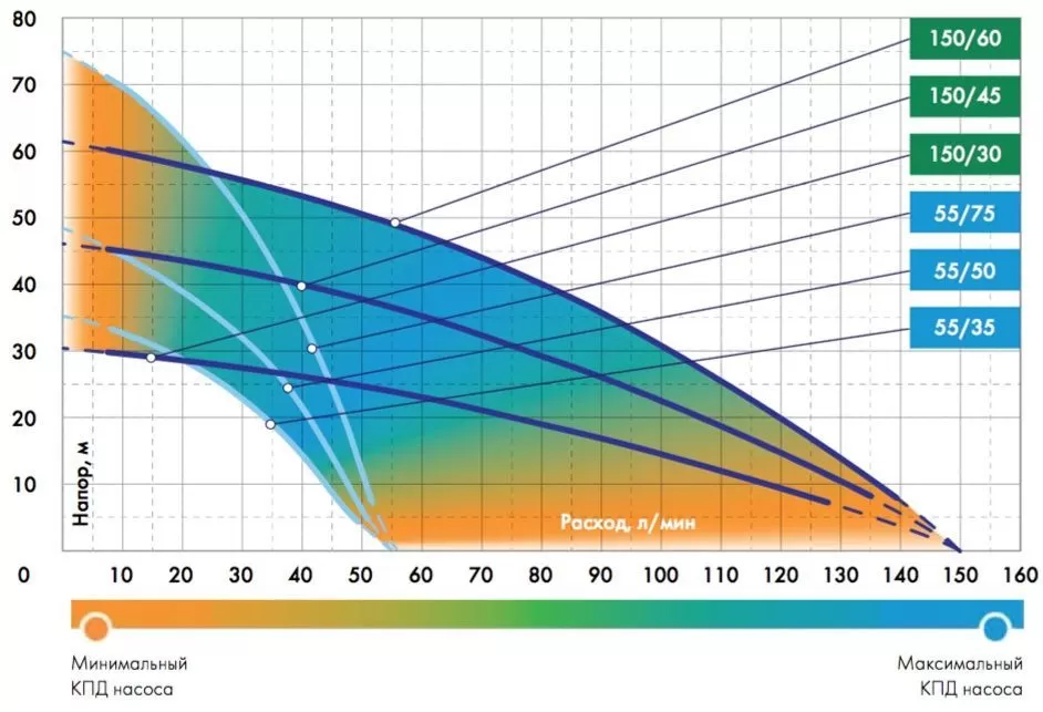 Максимальное количество воды на выходе из насоса.