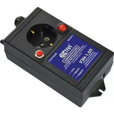 УЗН-1,5П (устройство защиты насоса) предназначено для управления и защиты поверхностных насосов. УЗН обеспечивает плавный пуск и плавную остановку подключенного насоса, а также обеспечивает его защиту от перегрузок по току и напряжению и от сухого хода. УЗН обладает функцией "обучения" характеристикам подключённого насоса, что позволяет применять УЗН для любого насоса, подходящего соответствующей модели УЗН по мощности Защита по сухому ходу осуществляется без использования датчика давления или датчика протока.