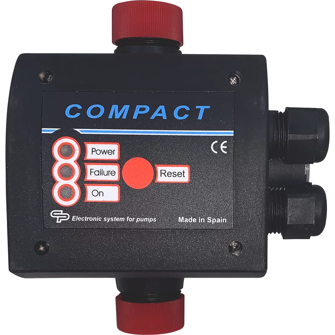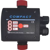 Электронный блок COMPACT предназначен для управления однофазным насосом систем водоснабжения. Прибор управляет работой насоса путем старта по заданному давлению от 1,5 до 3,5 бар (выставляется на корпусе отверткой) и останавливает работу насоса при обнаружении отсутствия протока воды в трубопроводе.