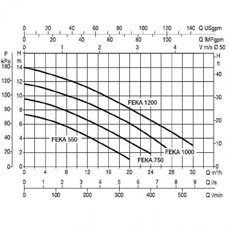 Графические характеристики фекального насоса DAB FEKA VS 750 M-A