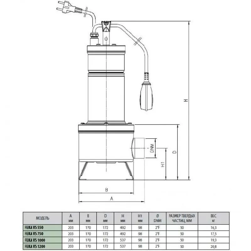 Схема фекального насоса DAB FEKA VS 750 M-NA