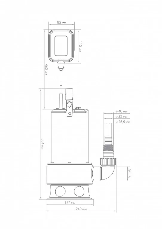 - Для нормальной работы поплавкового выключателя необходимо пространство не менее чем 500х500 мм.