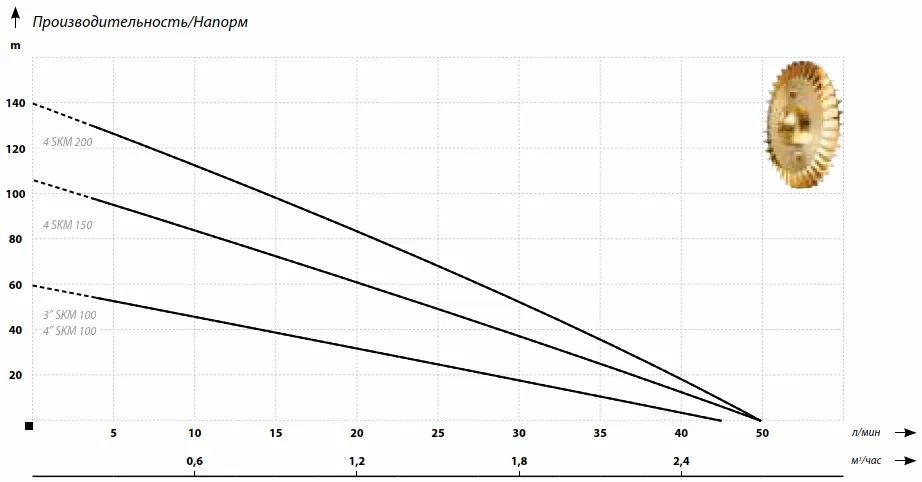 Насос SKM представляет собой надежное и эффективное решение для водоснабжения из скважин. Обладая мощностью 750 Вт, данный насос способен обеспечить максимальный напор до 60 метров и максимальный расход воды до 2.7 м³/час. Изготовлен из нержавеющей стали, он обеспечивает долгий срок службы, а его крыльчатка выполнена из латуни, что обеспечивает надежность и эффективность работы.