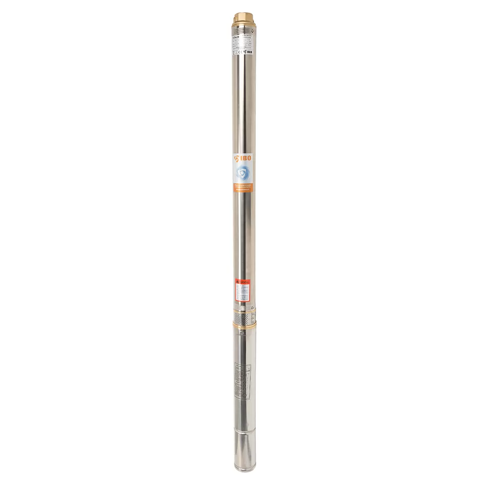 Многоступенчатые скважинный насосы диаметром 75 мм с повышенной устойчивостью к песку, рассчитанные на 3 и 4–дюймовые скважины. Насос IBO 3STM 16 обладает повышенной эффективностью к содержанию песка в перекачиваемой жидкости. Устойчивость к песку был достигнут благодаря использованию «плавающих лопастных колес» и выбору износостойких материалов. Скважинный насос IBO 3STM 16 обладает отменными характеристиками для насоса с небольшим диаметром. Максимальный напор насоса ИБО составляет 62 м, при этом максимальная производительность в пиковой точки показывает 6 м³/час. При таких напорно-расходных характеристиках мощность двигателя составляет всего 750 Вт. Конденсатор насоса встроен в двигатель, благодаря чему электрическая установка намного проще, чем в случае насосов со стартовой коробкой. Насос оснащен тепловой защитой, установленной в обмотке двигателя. Насос комплектуется кабелем 1 м. Основным преимуществом насоса IBO 3STM 16 является чрезвычайно высокая производительность для насоса диаметром 75 мм со скоростью до 6 м³/час.