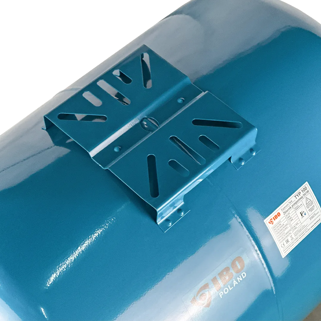 Горизонтальный мембранный бак для воды IBO объемом 100 литров. Бак выполнен из стали и покрыт специальным антикоррозионным составом. Мембрана бака выполнена из пищевой резины на основе бутилкаучука. Бак снабжен приварной площадкой для установки поверхностного насоса. В нижней части бака установлены металлические кронштейны с целью крепления бака к поверхности.