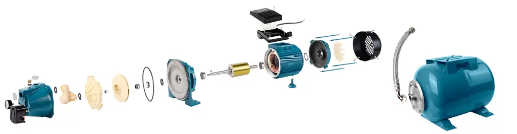 Одноступенчатая, самовсасывающая, насосная станция от Польского производителя IBO JET 100A TF 50л+защита по сух,ходу, оснащенный системой, увеличивающей мощность всасывания благодаря использованию трубки Вентури, предназначен для перекачивания чистой, холодной воды из собственных водозаборов и повышения давления. Максимальный забор воды до 8 метров, максимальный напор гидрофора 50 м, максимальна производительность 3.6 м³/час. При этом насосная станция обладает сравнительно не большой мощностью 1100 Вт. На насосной части установлена система автоматики на базе реле давления, защита от работы без воды в насосе есть. Насос установлен на баке объемом 50 л, которы предохраняет насос частых включений / отключений и компенсирует гидроудар в системе водоснабжения. Корпус насоса изготовлен из прочного чугуна, а двигатель оснащен тепловой защитой. Насос имеет шнур питания с вилкой 0.5 м. Насос также доступен с аксессуарами или в гидрофорном комплекте.