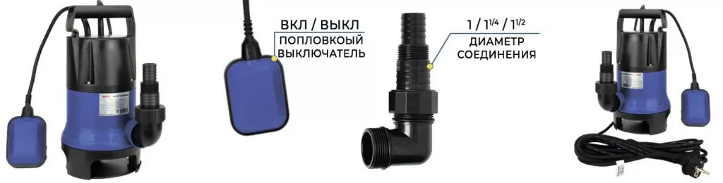 Для обеспечения безопасности и удобства эксплуатации стяжками или изолентой скрепите трос, электрический кабель и напорный шланг. Длину кабеля поплавка можно регулировать с помощью фиксатора на ручке насоса.