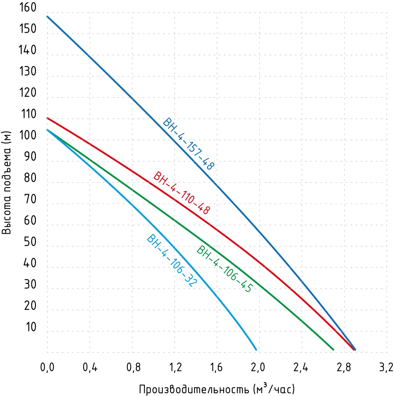 Графические характеристики насоса для скважины Jemix BH-4-106-32