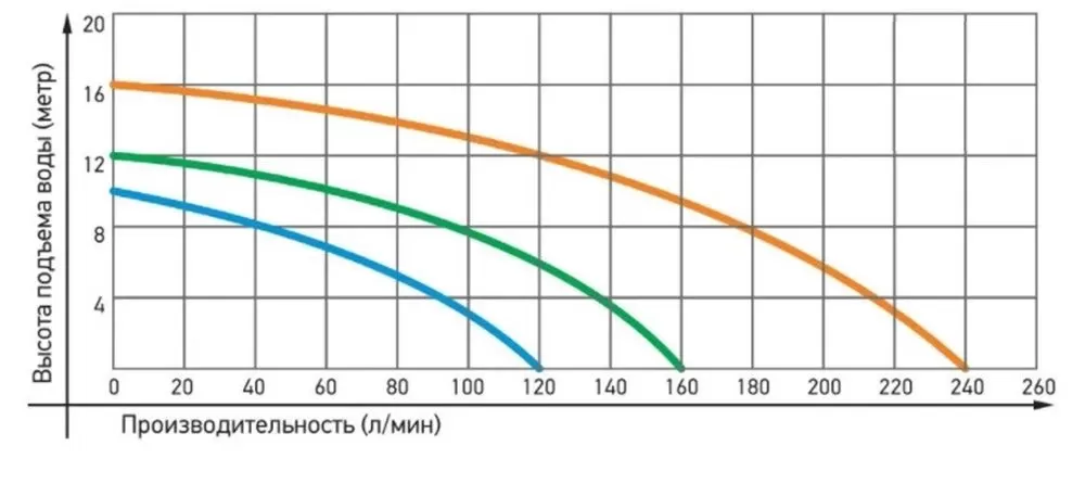 Графические характеристики циркуляционного насоса JEMIX WRF 50/16