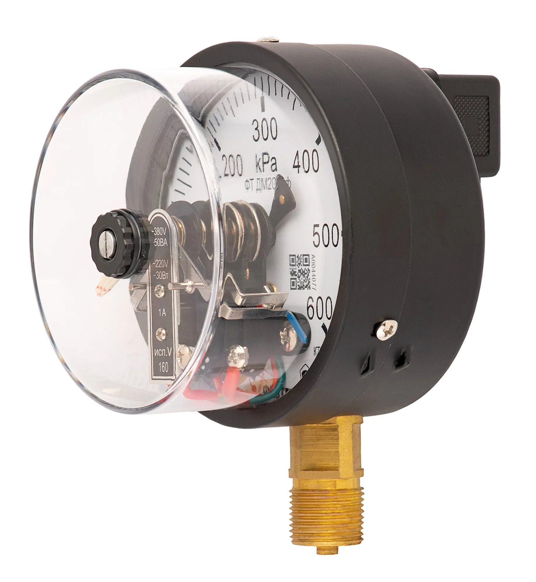Основное преимущество данного прибора это наличие электроконтактной приставки, что позволяет ему не только измерять давление, но и сигнализировать о его изменениях. Такой манометр станет отличным помощником в ситуациях, когда необходимо оперативно реагировать на колебания давления, обеспечивая безопасность и эффективность работы оборудования.