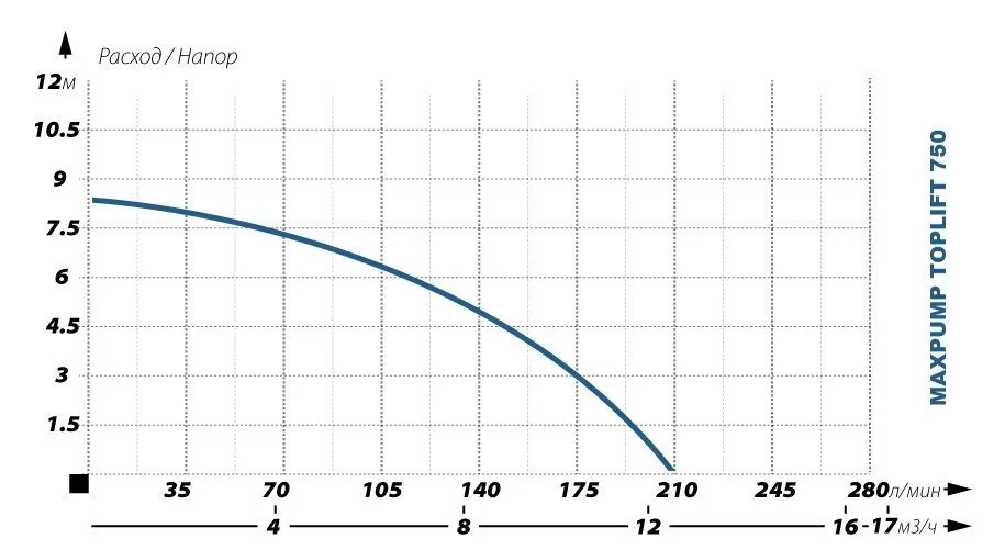 - Максимальный напор: 7 метров