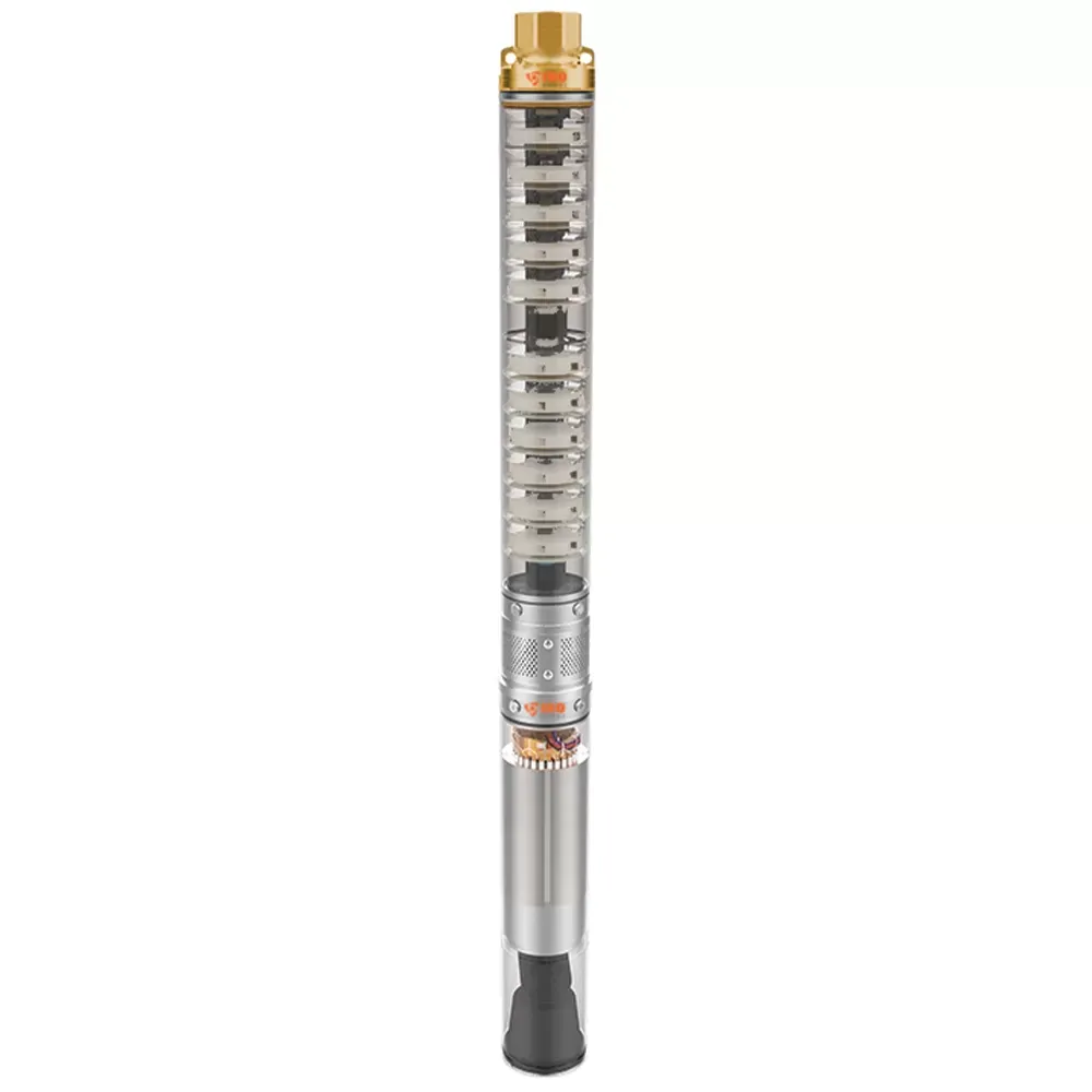 Трехфазный глубинный погружной насос IBO 4SD 4/14 (380В) диаметром 98 мм с повышенной устойчивостью к песку. Насос IBO 4SD 4/14 (380В) доступен к покупке с двигателями IBO и итальянскими двигателями IBO ITALY. В насосе IBO 4SD 4/14 (380В) используется технология «плавающих лопастных колес», а также для основных рабочих элементов насоса применяются износостойкие материалы: латунный нагнетательный патрубок, корпус, вал и сетка фильтра выполнены из нержавеющей стали AISI 304 / а также лопастные колеса выполнены из высококачественной пластмассы, Благодаря этому насос IBO 4SD 4/14 (380В) имеет повышенную стойкость к песку. Насос комплектуется кабелем 1 м, по желанию его можно нарастить до нужного размера. Скважинный насос IBO 4SD 4/14 (380В) имеет отличные характеристики. Напор насоса в максимальной точке составляет 102 м, а производительность достигает максимального показателя в 7.2 м³/час. Мощность двигателя составляет 1100 Вт, то вполне неплохо для насоса с такими напорно-расходными характеристиками. Насосы серии SD марки ИБО были первыми насосами на рынке, названными «анти–песочными». Они по прежнему являются одними из немногих скважинных насосов на рынке, которые имеют конструкции с такой высокой устойчивостью к песку. Максимальное содержание песка в воде – до 5%. Насос IBO 4SD 4/14 (380В) можно применять как аналог насосов ЭЦВ.