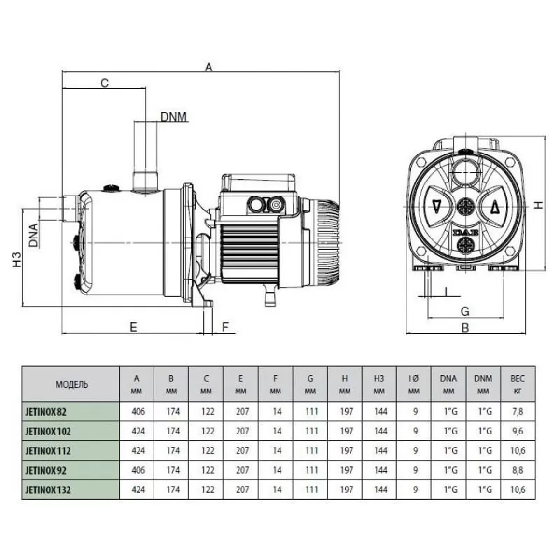 Поверхностный насос DAB JETINOX 112 M-P - самовсасывающий центробежный насос с отличной всасывающей способностью даже при наличии пузырьков воздуха. Особенно подходит для водоснабжения в бытовых установках, малом сельском хозяйстве, садоводстве и в случаях необходимости самовсасывания. Jetinox: корпус насоса – нержавеющая сталь. Опора двигателя – чугун, рабочее колесо, диффузор, трубка Вентури и защита от песка – технополимер.