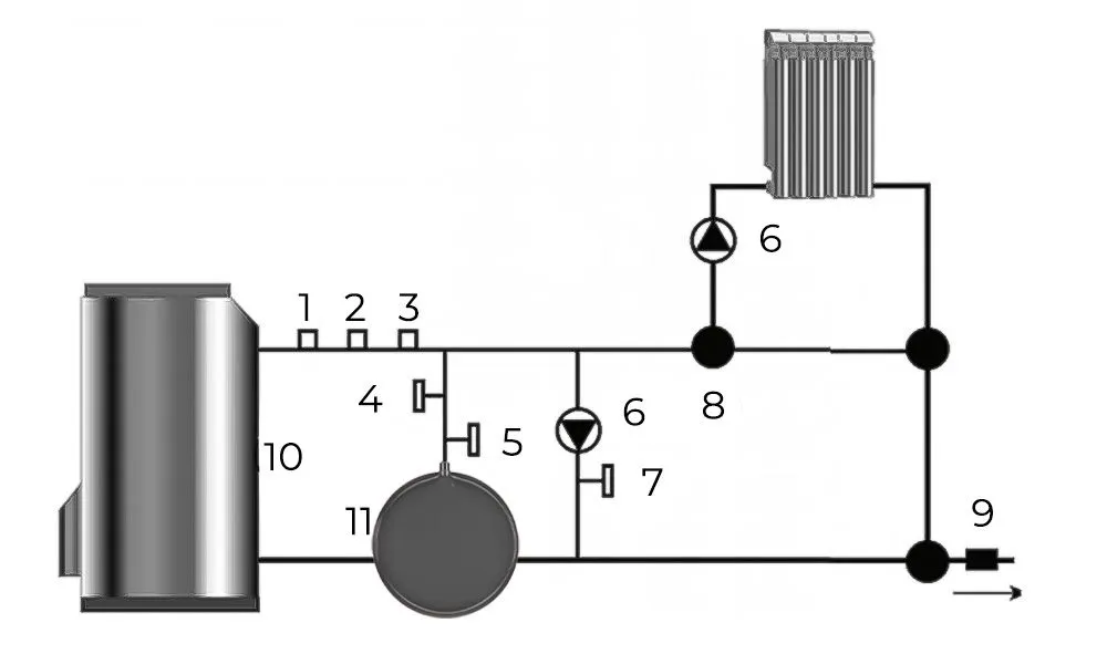 - Давление в баке должно быть отрегулировано, согласно статическому давлению системы (ориентир – самая высокая точка), но не меньше, чем требуется по паспорту котла.