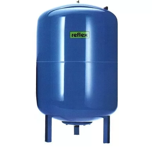 Расширительные баки для ГВС Refix DE 200 предназначены систем питьевого водоснабжения, горячего водоснабжения, систем пожаротушения, промышленного водоснабжения. Конструкция бака представляет собой непроточный гидроаккумулятор с бутиловой сменной мембранной в виде груши в соответствии с DIN EN 13831. Поверхности всех баков, контактирующие с водой, защищены от коррозии. На заводе заполнены азотом с предварительным давлением 4 бара. Баки снабжены рабочими штуцерами для подключения к системе ГВС диаметром 1¼". У основания бака установлены специальные опорные ножки. Максимальное рабочее давление для данной модели составляет 10 бар.