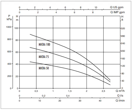 Графические характеристики DAB MICRA 75 M + 15 mt. Cable + Control Box
