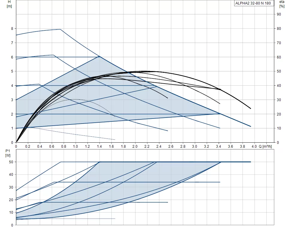 Циркуляционный насос Grundfos Alpha2 32-80 N используются для циркуляции воды или гликольсодержащих жидкостей в регулируемых системах отопления и в системах отопления с переменным расходом. Функция AUTOadapt ALPHA2 регулирует перепад давления в соответствии с текущими потребностями системы, нет необходимости регулировать насос самостоятельно – он все сделает за вас. Также есть 3 фиксированные скорости, 3 режима постоянного давления, 3 режима пропорционально давления.