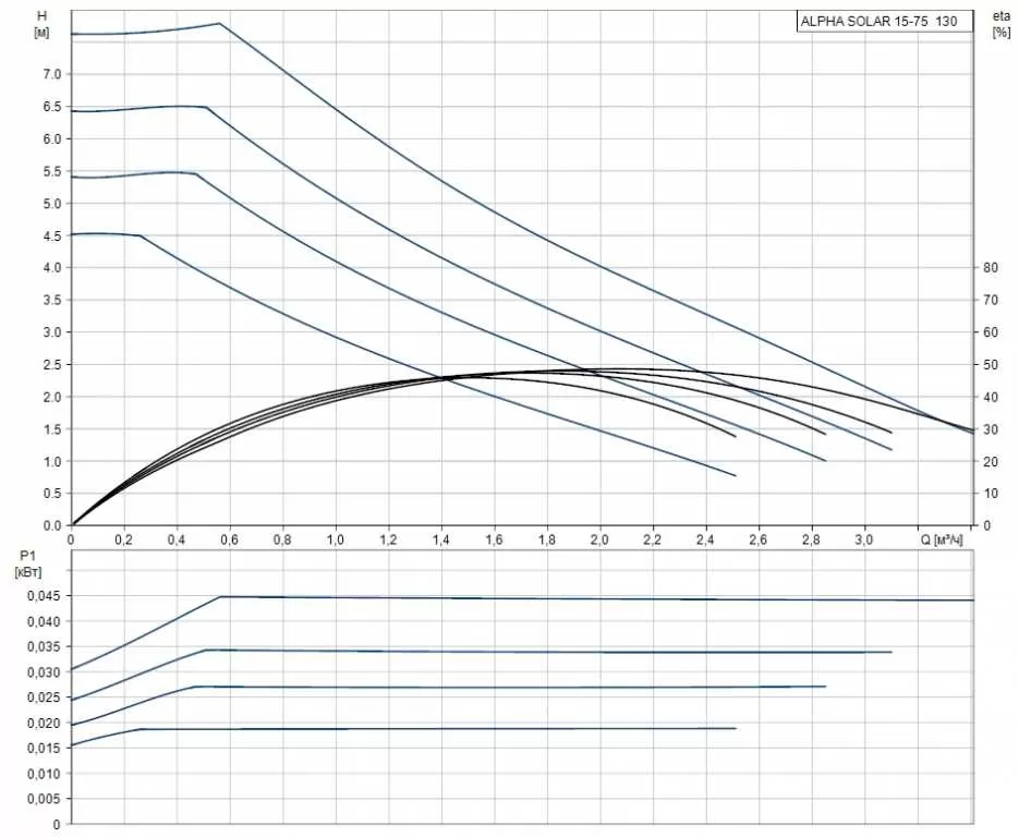 Циркуляционный насос Grundfos ALPHA SOLAR 15-75 130 предназначен для использования во всех видах тепловых солнечных систем с любой переменной (совпавшего потока) или постоянной скорости потока. ECM (электронно-коммутируемого двигателя) Насосы высокого КПД, такие как альфа солнечная энергия, не должна быть регулируемой скоростью с помощью внешнего регулятора скорости переменного или пульсирующего напряжения питания.