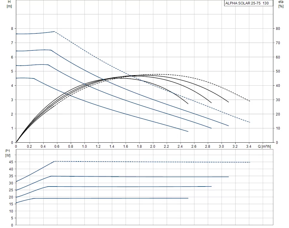 Циркуляционный насос Grundfos ALPHA SOLAR 25-75 130 предназначен для использования во всех видах тепловых солнечных систем с любой переменной (совпавшего потока) или постоянной скорости потока. ECM (электронно-коммутируемого двигателя) Насосы высокого КПД, такие как альфа солнечная энергия, не должна быть регулируемой скоростью с помощью внешнего регулятора скорости переменного или пульсирующего напряжения питания.
