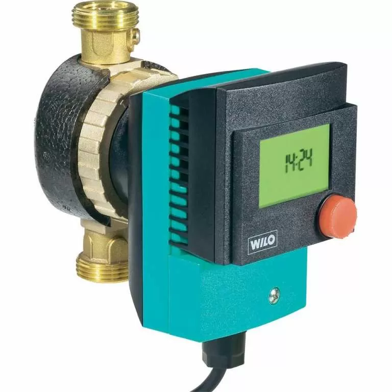 Циркуляционный насос WILO STAR-Z 15 TT для систем ГВС (исполнение насоса с мокрым ротором) для одноквартирных домов. Насос для установки в трубах, устойчивый к токам блокировки электродвигатель, полностью латунный корпус насоса с обратным и шаровым запорным клапаном, рабочее колесо из полифениленоксида (PPO/норил), вал из нержавеющей стали. Насос со встроенным таймером, контролем температуры и программой распознавания и поддержки схемы термической дезинфекции котла.